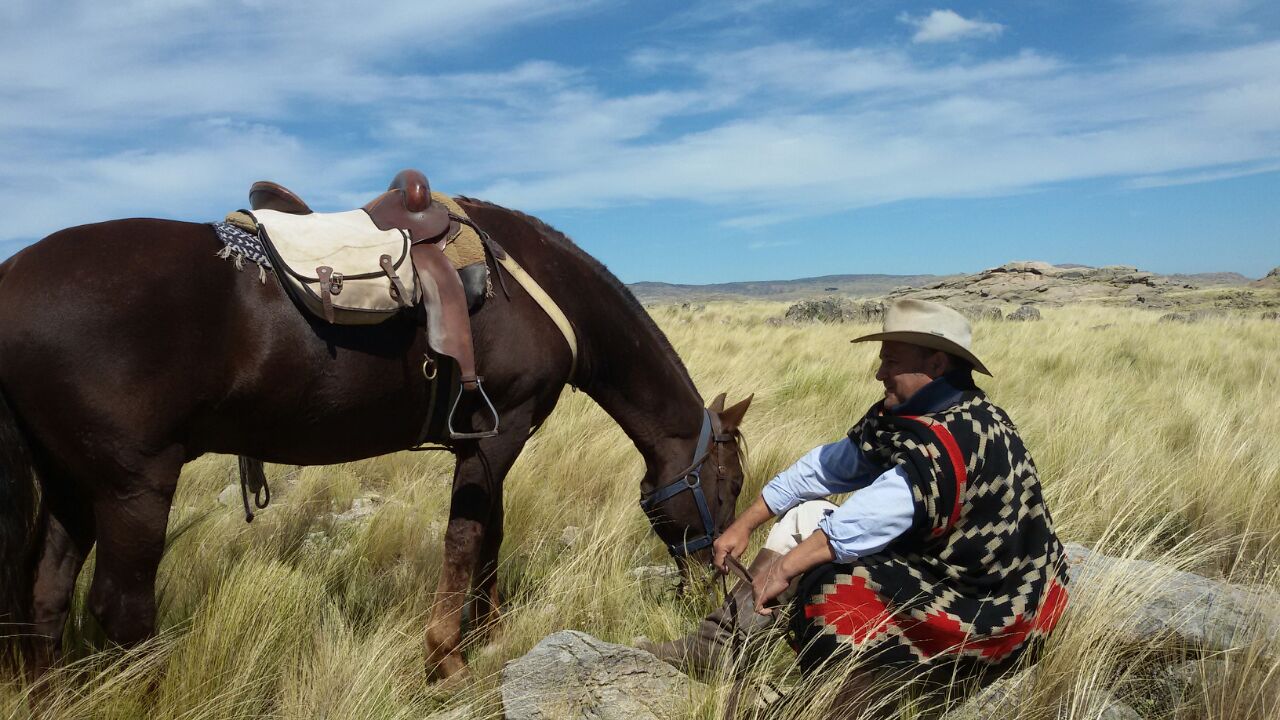Gustavo Rossi en la «Cabalgata Brocheriana 2016» (Poncho de Guarda Pampa Nº 176 «Familia Avar Saracho»)