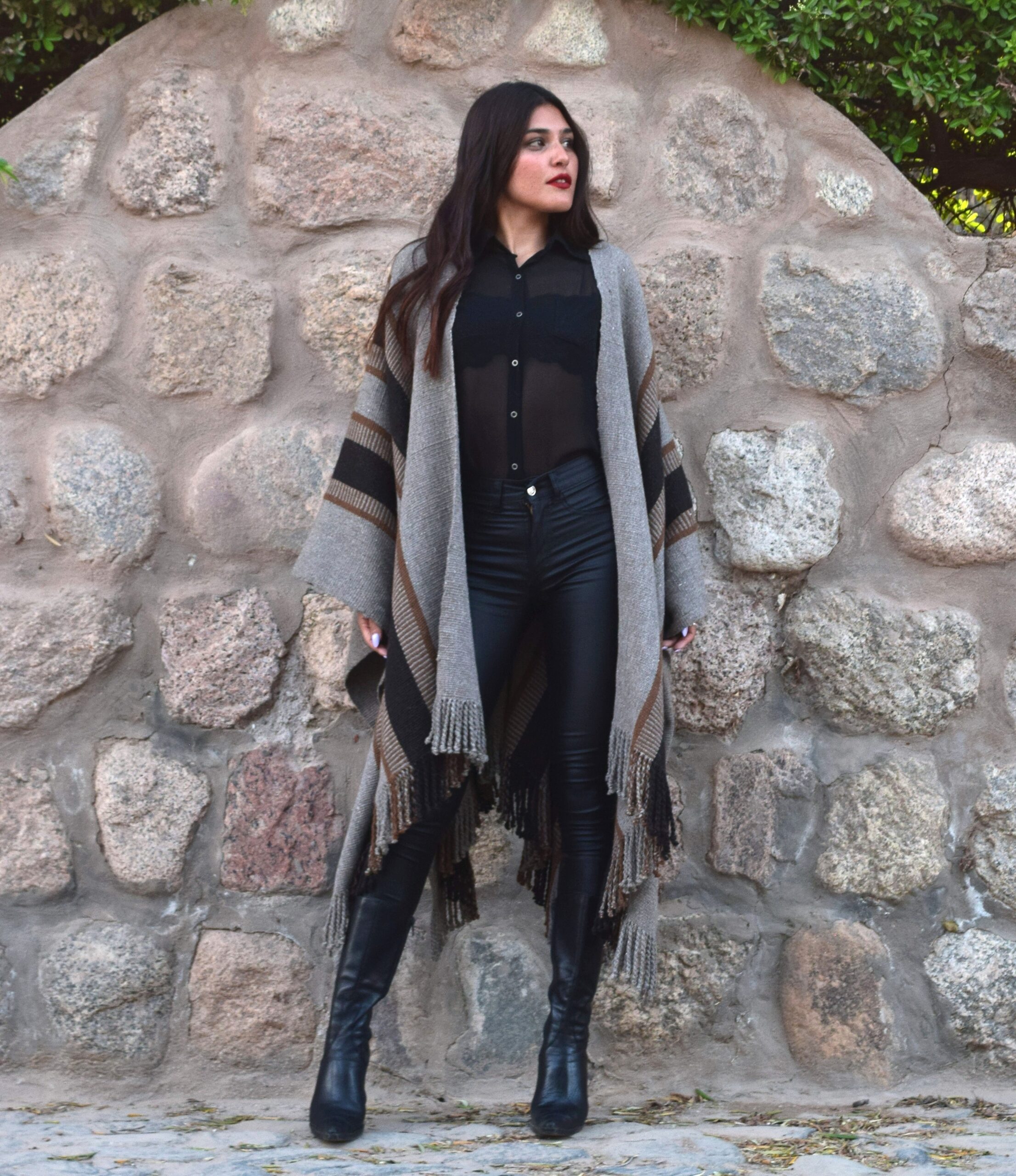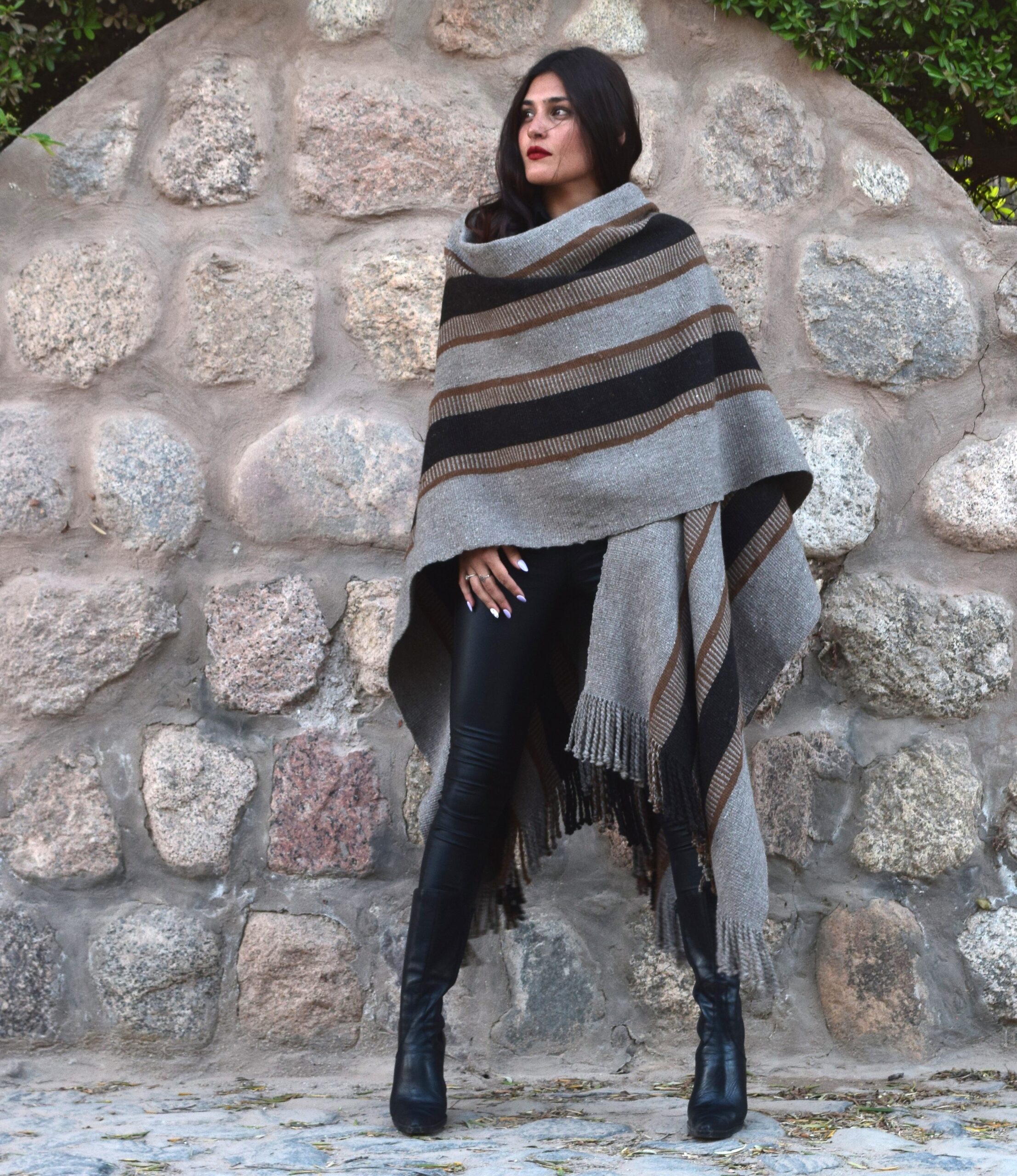 Ruana de Llama L507 “Familia Avar Saracho” Material: Lana de LlamaMedida: 1.80 mts. x 1.30 mts.Peso 1.600 kg.Color: Gris. Marrón. NegroDISPONIBLE CON ENVÍO INMEDIATO